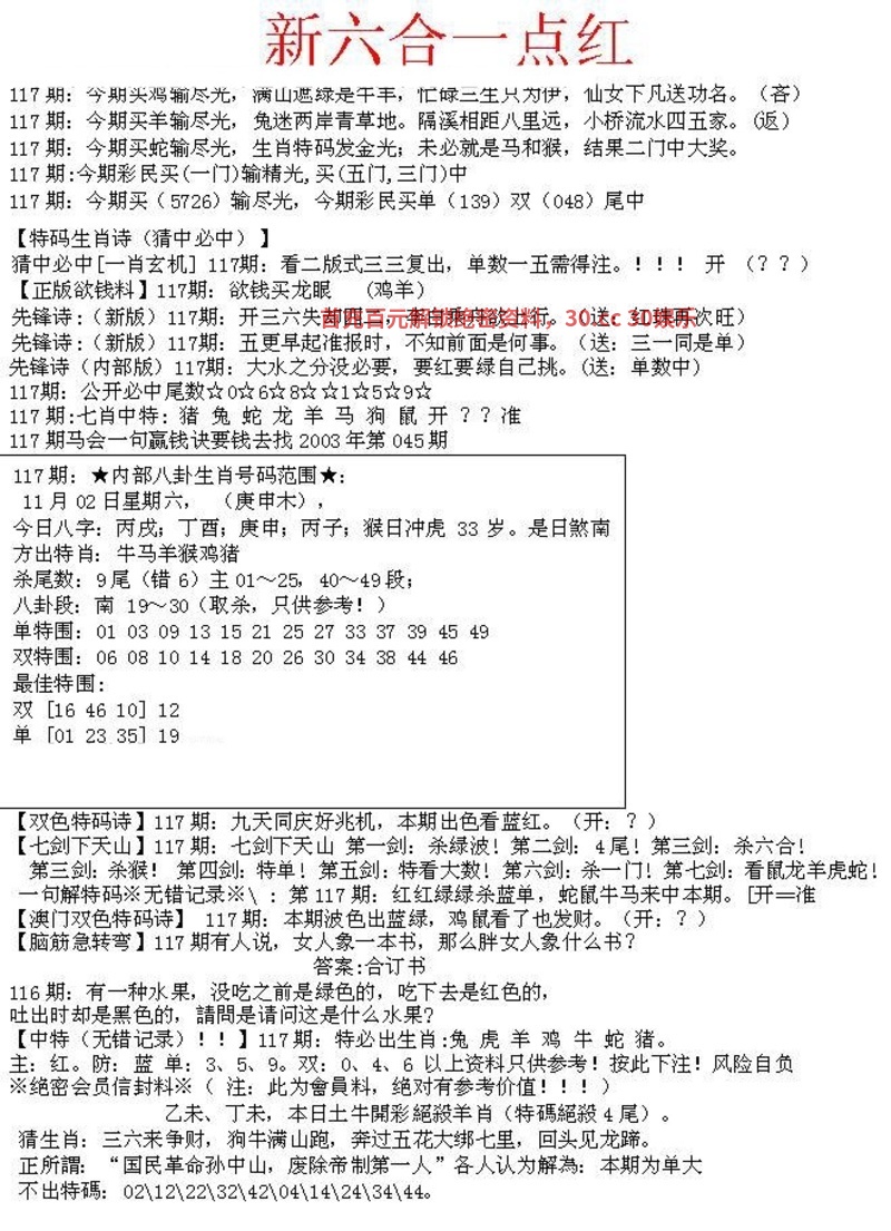117期九肖『马龙狗蛇鼠鸡羊猴』开:虎04中